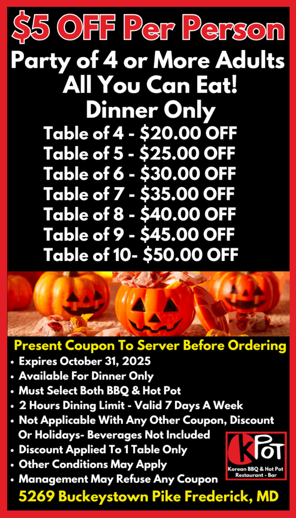 $5.00 OFF Dinner Per Person Party of 4, 5, 6, 7, 8, 9, 10+